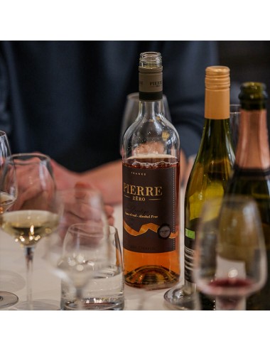 Mit einer goldgelben Farbe mit brillanten Reflexen offenbart Pierre 0% Prestige Blanc eine Nase mit Aromen von Pfirsich und weißen Blüten.